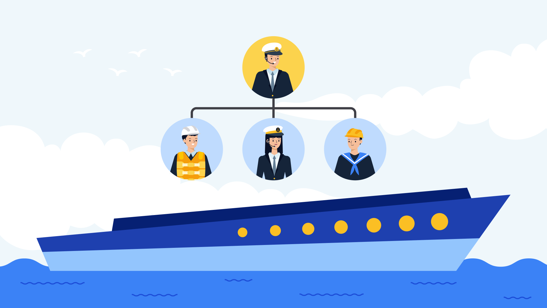 Contohnya terlihat pada gambar diagram di atas, yaitu seorang Direktur yang memegang kendali atas tiga manajer departemen yaitu Manajer Operasional, Manajer Akademi, dan Manajer Bisnis. Di bawah para manajer terdapat posisi-posisi fungsional yang memiliki tanggung jawab langsung kepada para manajer, seperti Program Operation dan Program Officer yang bertanggung jawab kepada Manajer Operasional; lalu Pengembang Kurikulum dan Penulis Konten bertanggung jawab Manajer kepada Akademi; kemudian Sales & Marketing Associate serta Partnership & Sales Representative bertanggung jawab kepada Manajer Bisnis.